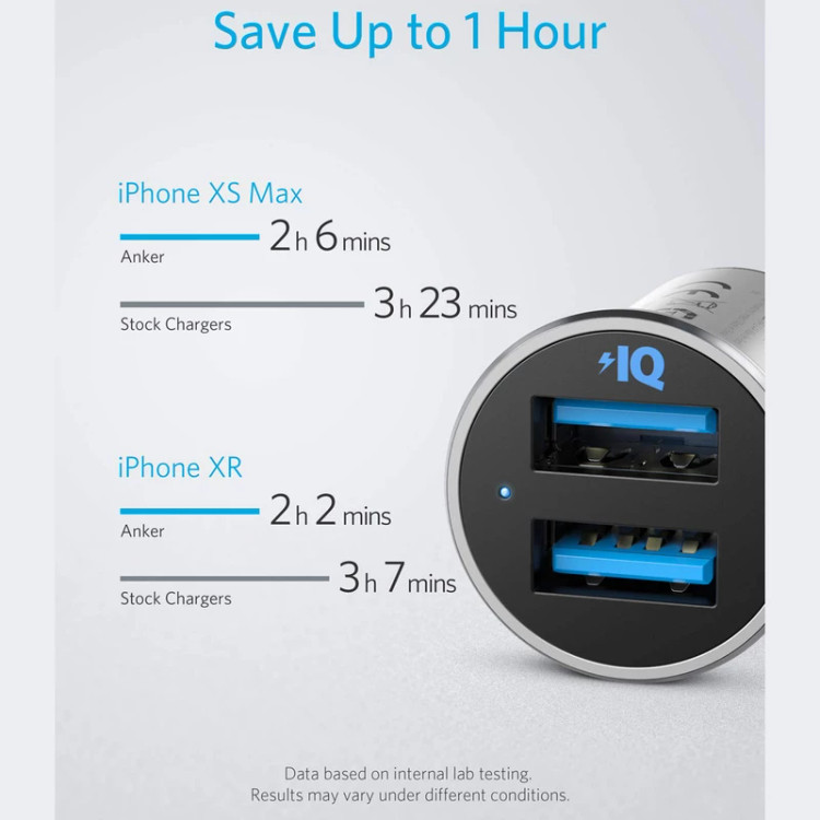شارژر فندکی ۲ پورت anker دارای ۲ پورت خروجی usb میباشد که میتوان همزمان بدون مشکل ۲ دستگاه را شارژ نمود . این ۲ پورت از فناوری PowerIQ بهره میبرند که به طور هوشمندانه دستگاه شما را شناسایی کرده و با حداکثر سرعت ممکن آن را شارژ میکند.