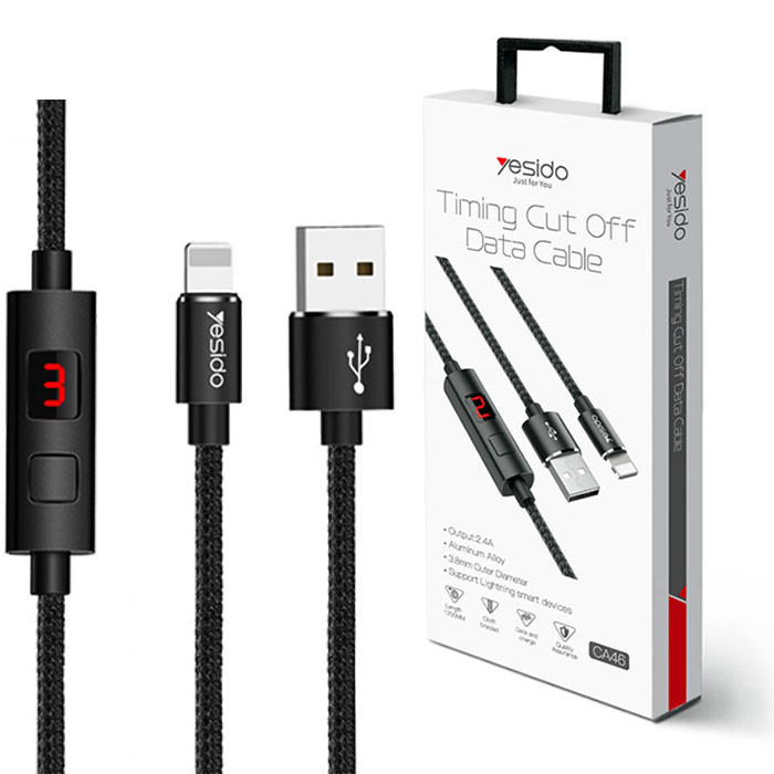 کابل CA46 محصولی از کمپانی خوش نام Yesido است این کابل دارای کانکتور Lightning است و فقط برای دستگاه های هوشمند دارای این پورت مناسب است .کاربر میتواند با استفاده از این کابل دستگاه هوشمند خود را با شدت جریان و ولتاژ 5V-2.4A شارژ کند که سرعت بسیار بالایی برای شارژ دستگاه هوشمند محسوب می شود. طول این کابل 120 سانتی متراست و برای استفاده روزمره بسیار مناسب است . جنس بدنه این محصول به صورت کنفی طراحی شده تا در برابر کشش ، پارگی ، خم شدن و گره خوردن مقاومت بالایی داشته باشد. در میان بدنه کابل Yesido CA46 یک تایمر قرار دارد که می توانید با فشار دادن کلید آن ، تایم آن را از بین 0 تا 5 انتخاب بکنید.زمانی که کابل بر روی تایم 0 قرار دارد هیچگونه شدت جریانی در آن وجود ندارد و گوشی شما را شارژ نمی کند و زمانی که شما زمان برای آن تعیین می کنید بعد از گذشت آن مدت شارژ متوقف می شود تا هیچگونه آسیبی به باتری گوشی شما وارد نشود. شما می توانید علاوه بر شارژ ، اطلاعات خود را هم با سرعت بالا از طریق این محصول انتقال دهید. سوکت های این محصول دارای یک روکش فلزی بوده و همین امر باعث شده مقاومت آن در برابر ضربه و فشار از توان بالایی برخوردار باشد.