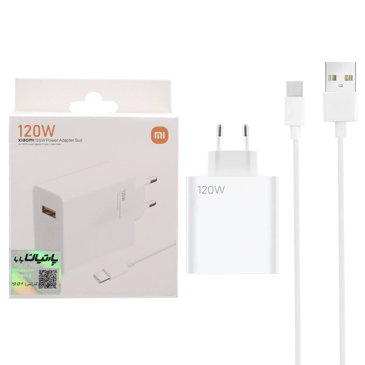 شارژر دیواری 120W فست تک پورت Xiaomi مدل MDY-12-ED به همراه کابل شارژ Type-C - سفید درجه یک