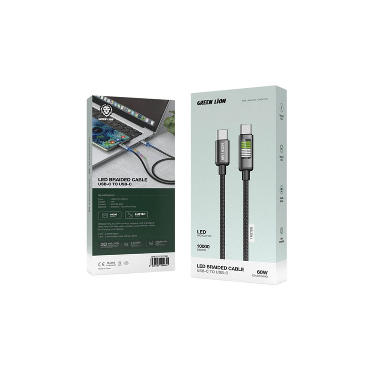 کابل ال ای دی تایپ سی به تایپ سی بافته شده گرین