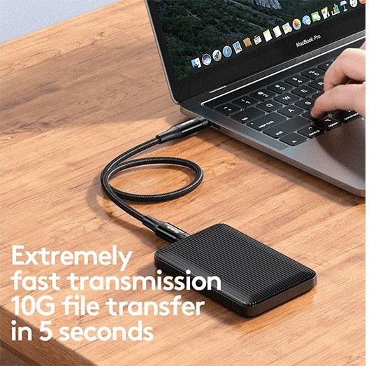 این کابل علاوه بر شارژ سریع، قابلیت انتقال داده با سرعت بالا را نیز دارد و برای انتقال فایلهای حجیم مناسب است.