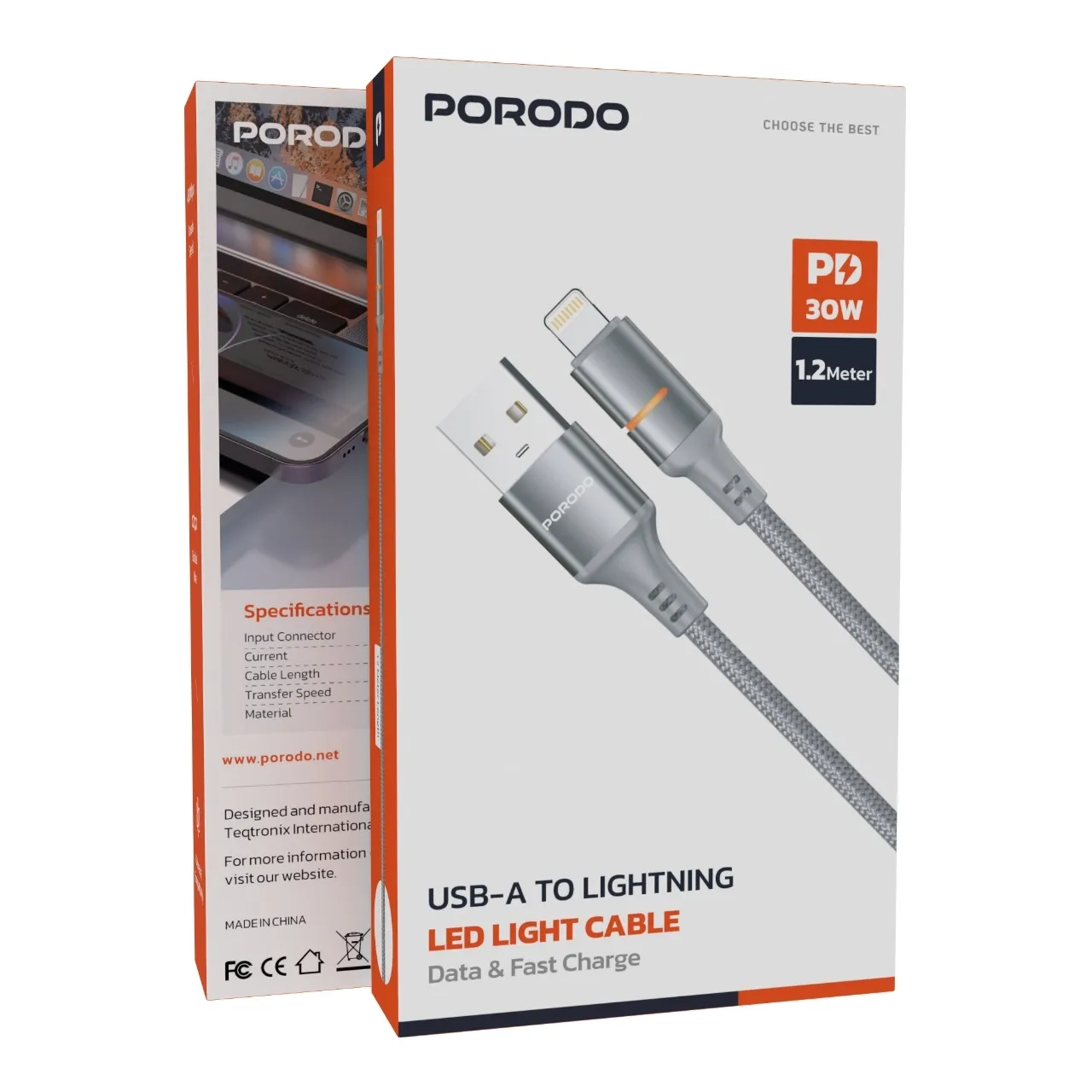 کابل شارژ PD و فست 1.2 متری آیفون Porodo مدل PDCBL0027GYL 30W - طوسی